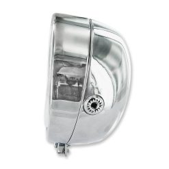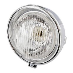 Scheinwerfer chrom, mit Licht-Schalter und Abstellknopf für Puch Maxi. Kann universell auch für andere Mofas verwendet werden.