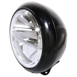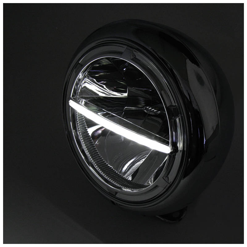 HIGHSIDER VOYAGE HD-STYLE LED-Scheinwerfer, 7 Zoll, Metallgehäuse chrom mit verchromtem Einsatz, klares Glas, rund, untere Befestigung, E-geprüft.