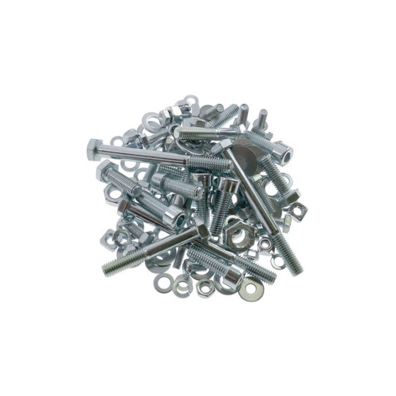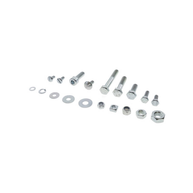 Der Schraubensatz beinhaltet sämtliche Einzelteile für den Rahmen und Anbauteile. Die drei Schrauben zur Motorenbefestigung sind ebenfalls inbegriffen.
