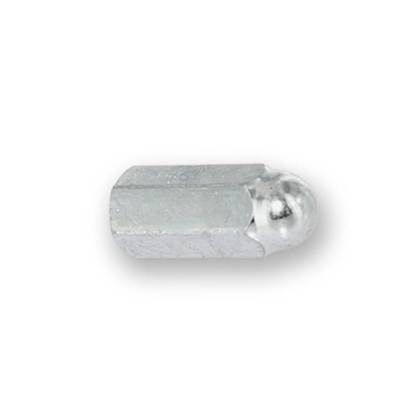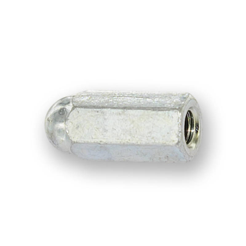 Formschöne, lange M6 Mutter mit rundem kugelförmigem Abschluss, edel verchromt.