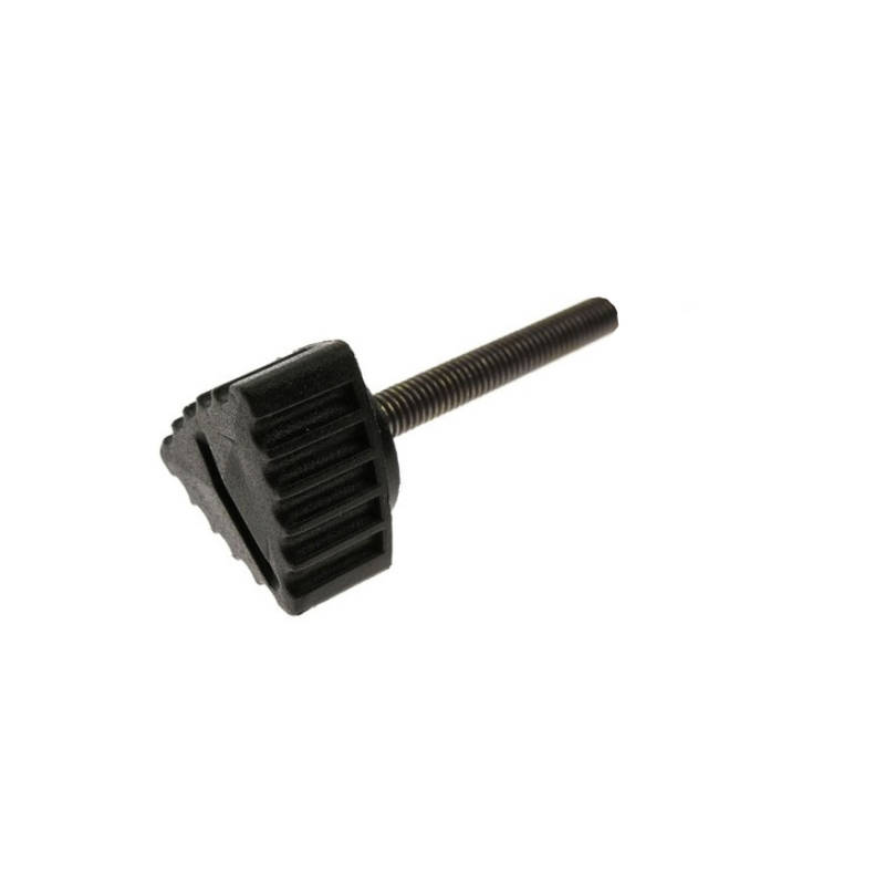 Die Schraube der Seitenverkleidung hat einen Kunststoffkopf und ist fest mit dem Gewindebolzen verankert.