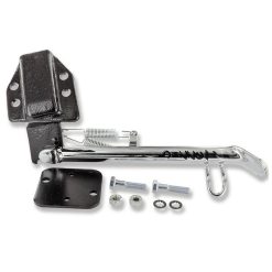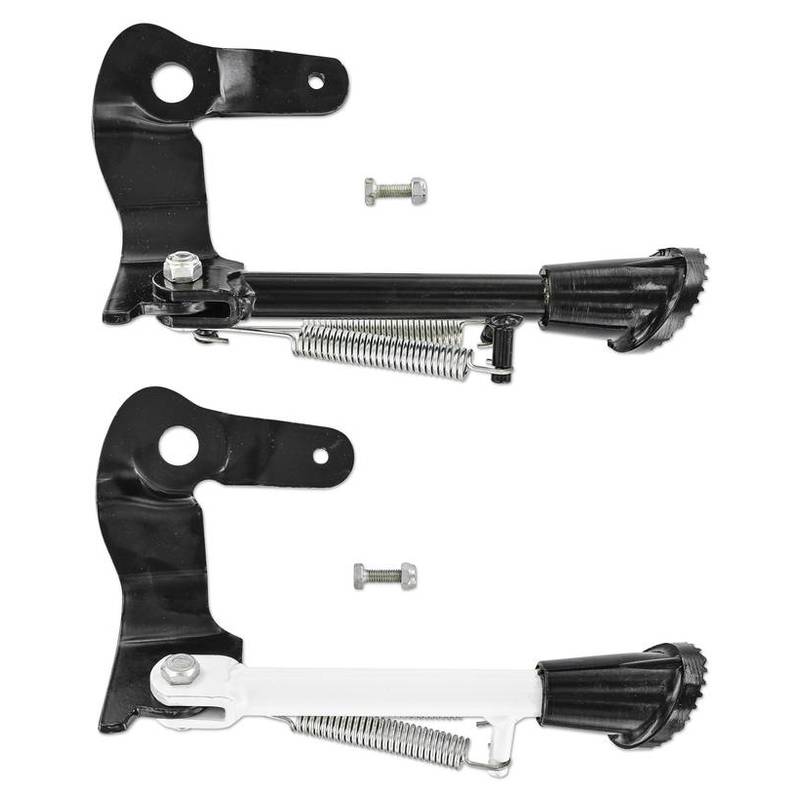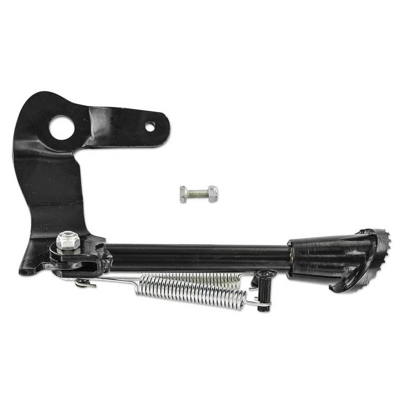 Seitenständer für einfache Montage an der Tretachse/Auspuffaufnahme.