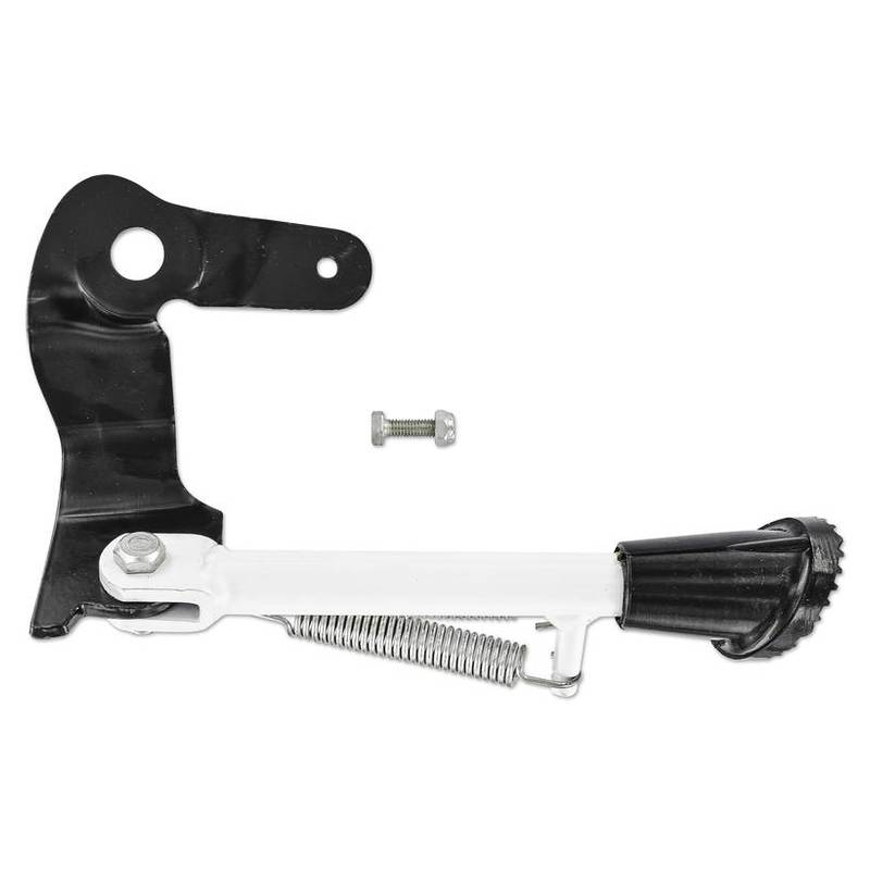 Seitenständer für einfache Montage an der Tretachse/Auspuffaufnahme.