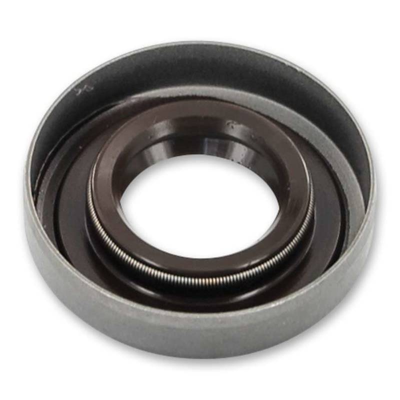 Hitzebeständiger Simmerring mit Staub- und Dichtlippe aus Stahlblech und Viton.