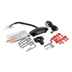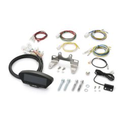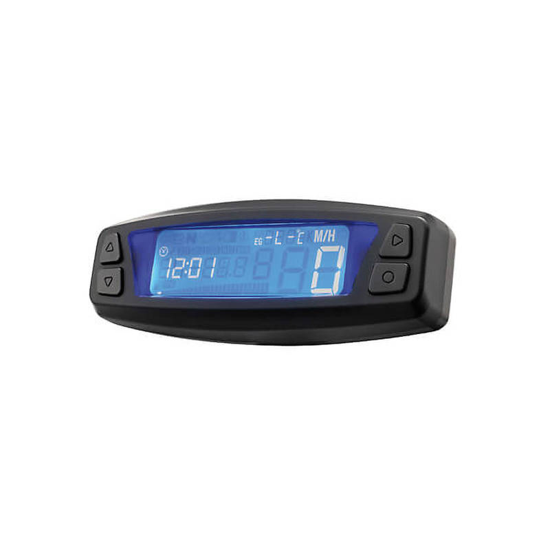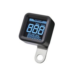 Das kompakte Gehäuse des digitalen Cockpits hat eine Grösse von 120x40x28.5mm und enthält alle Funktionen, die man braucht. Dank der mitgelieferten Halterung ist die Montage an jedem Lenker mit einem Durchmesser von 7/8 Zoll (22mm) bis 1 Zoll (25.4mm) möglich. Ausserdem ermöglichen die zwei Schraubenlöcher (M5) auf der Rückseite des Gehäuses eine flexible Montage. Das Display hat eine blaue Hintergrundbeleuchtung und zeigt alle nötigen Informationen wie Geschwindigkeit, Drehzahl, Kilometerstand, Tankniveau, Uhrzeit usw. an. Inkl. Anleitung in deutscher und englischer Sprache.