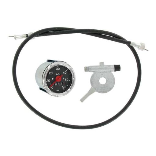Tachoset bis 60 km/h bestehend aus Tacho, Schnecke (Antrieb) und Tachokabel. Passend auf alle Piaggio SI Mofas.