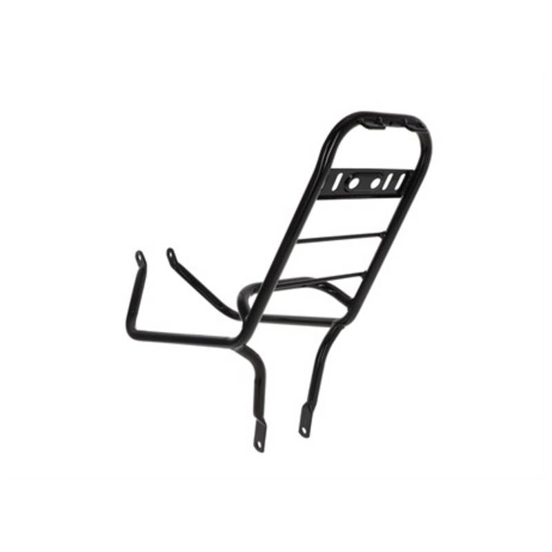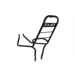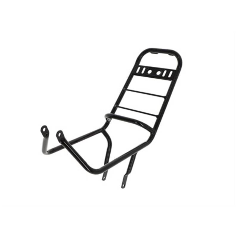 Praktischer schwarz glanz pulverbeschichteter Gepäckträger, welcher zu optischen sowie aber auch praktischen Zwecken dient.
