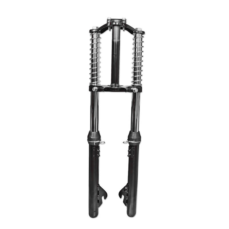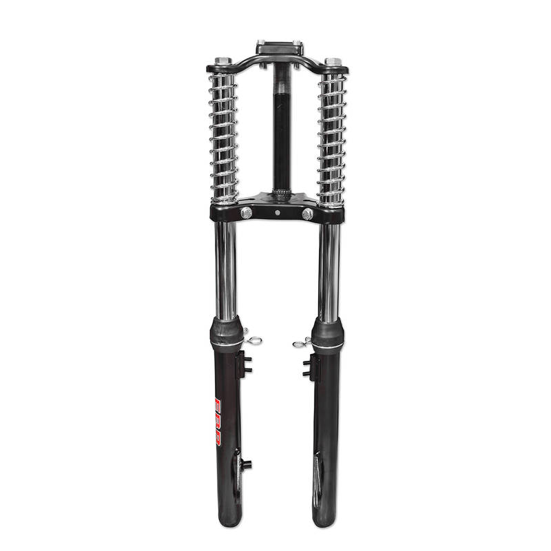 Teleskopgabel von EBR als Ersatz für die originale Kurzschwingengabel. Deutlich bessere Strassenlage und ein direktes Fahrgefühl zeichnen diese Gabel aus. Für stark getunte Ciao und Rennmofas eine fast unverzichtbare Fahrwerksverbesserung. Pulverbeschichtet in Schwarz-Matt.
