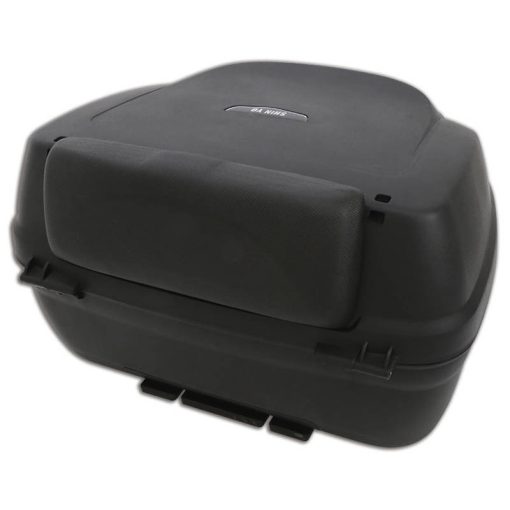 Schwarzes Top Case mit getöntem Reflektor, 40 Liter Volumen und Rückenpolster. Der große Stauraum bietet Platz für 2 Helme.