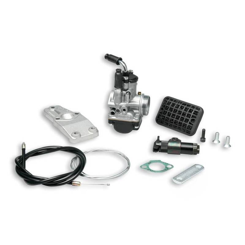Komplettes Vergaserset zum Malossi Renngehäuse. Im Lieferumfang sind Vergaser Dell’Orto PHBG 19mm, Chokehebel, Gaszug, Ansaugstutzen sowie ein spezieller Luftfilter inbegriffen. Ideal bei Verwendung des Kits Malossi 46.5mm auf dem Malossi Renngehäuse.