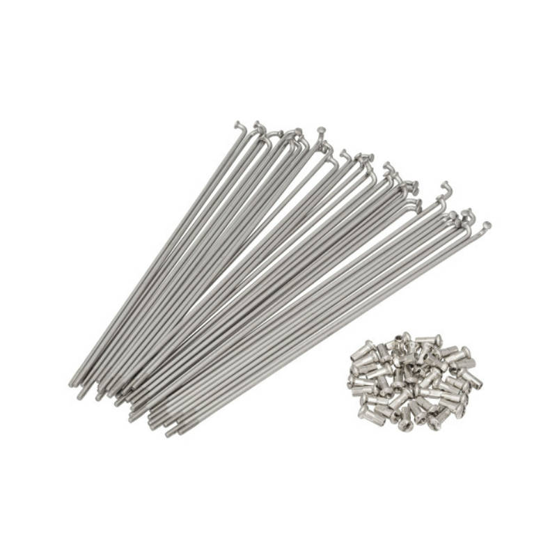 Der Kit besteht aus 36 Stück Speichen aus rostfreiem Stahl und 36 Stk. vernickelter Messingnippel.