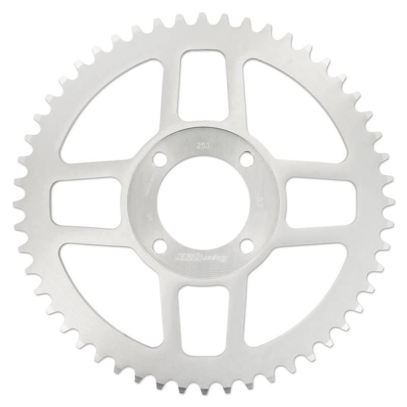 Dieser Zahnkranz hat eine 420er Kettenteilung und ist somit 6mm breit. Die Lebensdauer wird entsprechend verlängert.