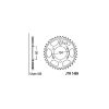 Aluminium-Zahnkranz mit 415er Kettenteilung (Mofa und GP 125). Dieser Zahnkranz muss auf die jeweilige Nabe angepasst werden. Das Loch in der Mitte hat einen Durchmesser von 35mm, was die Anpassung auf nahezu jede Nabe ermöglicht.