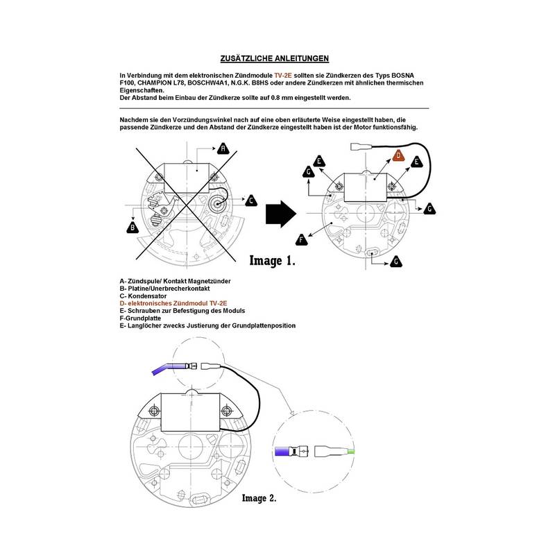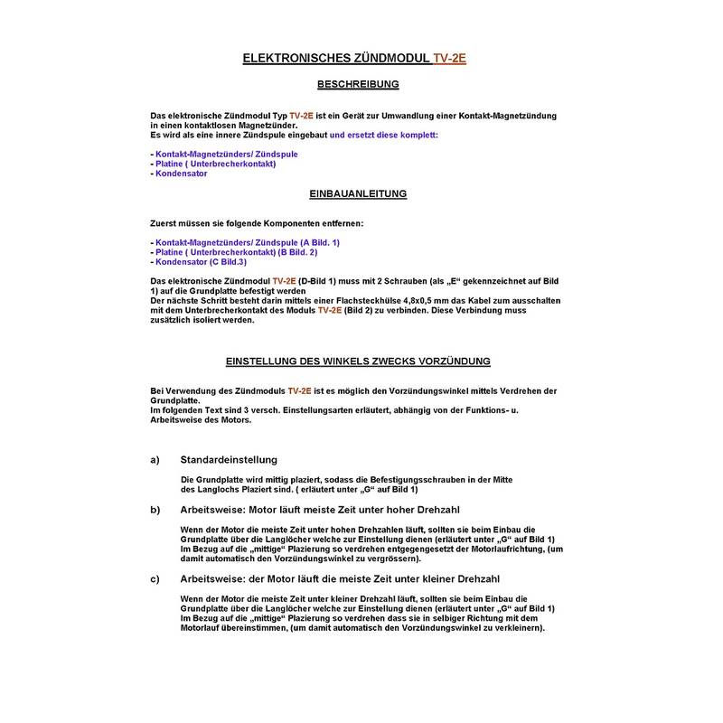 Das elektronische Zündmodul Typ TV-2E ist ein Gerät zur Umwandlung einer Kontakt-Magnetzündung in einen kontaktlosen Magnetzünder.