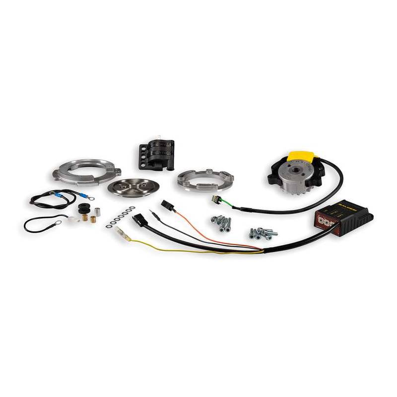 The inner rotor ignition systems designed by Malossi are based on the state-of-the-art technology applied to racing. Such a new system resulted from the need to overcome the technical limitations imposed by conventional flywheel ignition, which cannot ensure consistent performance over 10,000 rpm and causes severe setting-up problems for racing vehicles.