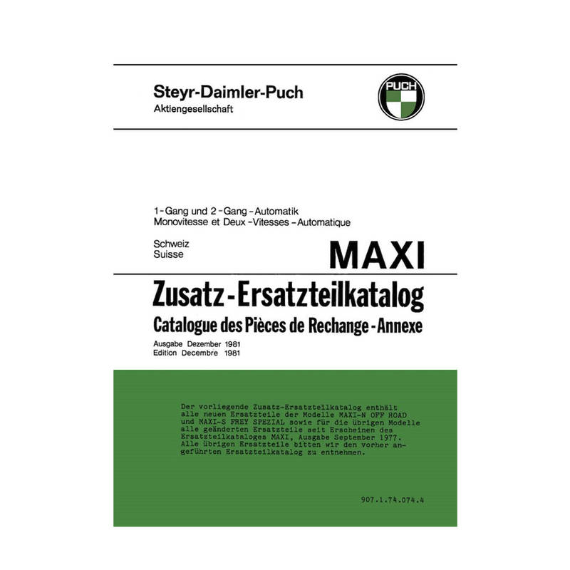 Zusatz-Ersatzteilkatalog Puch Maxi N off Road, Maxi S (Frey Spezial) 1- und 2-Gang