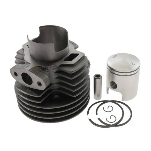 Gebläsegekühlter 41 mm Zylinderkit mit 10 mm Kolbenbolzen für die alten Puch X30 Velux Mofas. Ohne Plombe. Achtung: Der Kleine Schlitz am Motorgehäuse neben dem rechten Überströmkanal muss zur Dichtfläche hin mit Kaltmetall aufgegossen werden damit der Zylinder dicht ist.