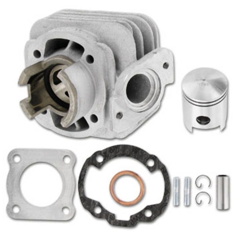 Der spanische Markenanbieter setzt mit seinen Zylindern auf Aluminiumbauweise mit extrem harter NiCaSil hartverchromt Laufbahnbeschichtung, welche gegenüber Grauguss deutlich bessere Wärmeableitung aufweist. Dadurch sind die Zylinder weniger anfällig gegen Verschleiß und Kolbenklemmer durch Temperaturprobleme. Leistungsmäßig liegt der 50er Sport etwas über dem Original-Zylinder und eignet sich dadurch hervorragend als Originalersatz mit leichtem Leistungsplus und Drehmomentzuwachs für besseres Anfahrverhalten.