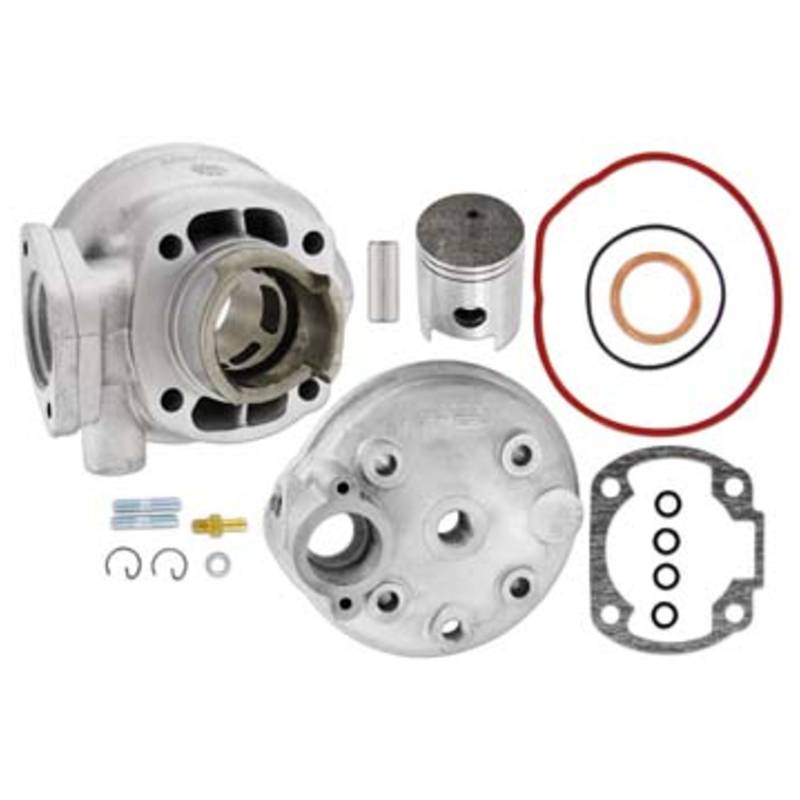 Von Airsal können wir euch einen leistungsgesteigerten Aluzylinder mit Originalhubraum anbieten. Das überarbeitete Portmapping und die besseren thermischen Eigenschaften ermöglichen eine im Vergleich zum Originalzylinder höhere Drehzahl und daraus resultierend mehr Leisung. Am besten wird der Zylinder durch eine Sportauspuffanlage gestützt. Mit den originale Kat-Auspuffen ist keine Leistungssteigerung zu erwarten.
