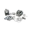 Aluminiumzylinder mit Chromlaufbahn (Kolbenspiel: 0.05mm), ultraleichter verstärkter Schmiedekolben mit hohem Siliziumanteil, meist 3 Kolbenringe, optimierter Gasfluß und Verbrauch.