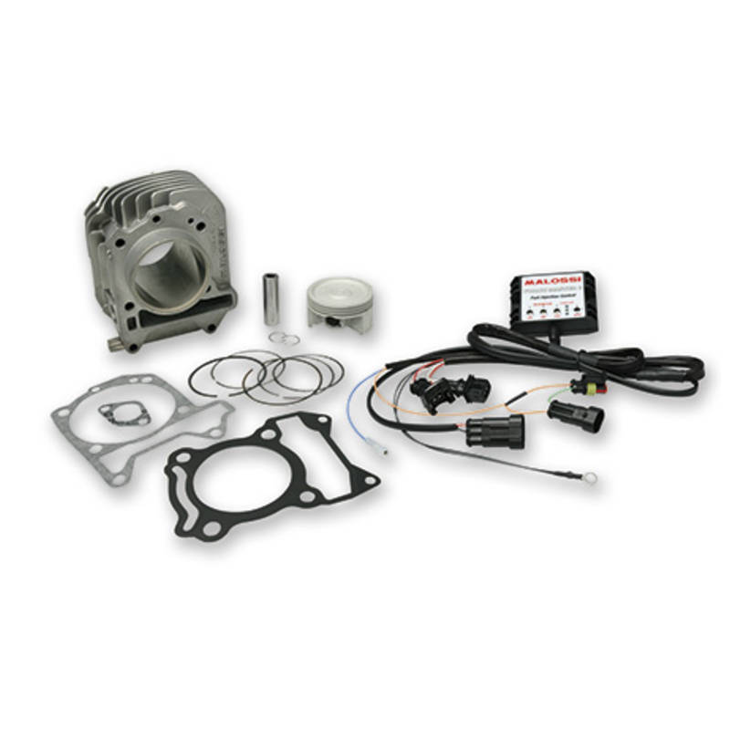 Malossi bietet auch für die meisten 4-Takt Maxiscooter eine mittlerweile stattliche Palette an Tuningzylinder an. Die 185ccm grossen Aluminiumzylinder mit Chromlaufbahn (Kolbenspiel: 0.05mm) sorgen dank mehr Hubraum und optimiertem Gasflus für bis zu 30% Mehrleistung. Das Kit ist mit einem verstärkten und trotzdem sehr leichten Schmiedekolben mit hohem Siliziumanteil ausgerüstet.
