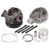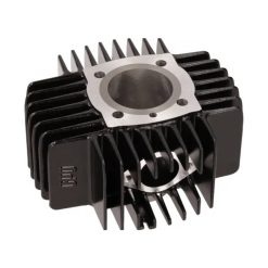 Der Aluminiumzylinder mit Grauguss-Laufbüchse ist ein optimierter Nachbau des originalen Metrakit-Racingzylinders. Die Steuerzeiten wurden im Vergleich zum Original überarbeitet und mit mehr Vorauslass versehen, wodurch das bekannte Kolbenklemmer-Problem aufgrund hoher Hitzeentwicklung der Vergangenheit angehört. Zudem wurde die Zylinderhöhe präzise angepasst, sodass die früher notwendige extradicke Fussdichtung nun überflüssig ist.
