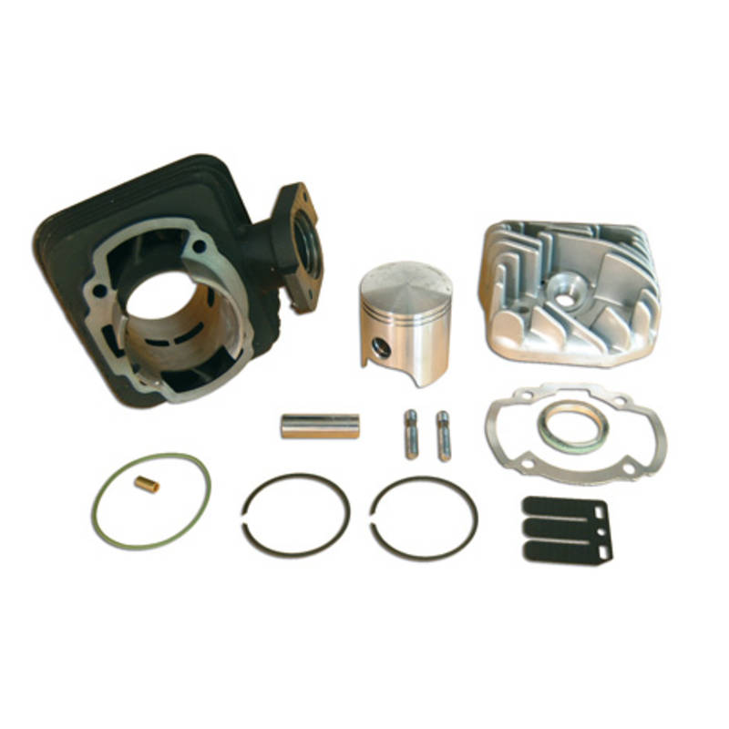 Der kleine Bruder des 70cc Sport. 40mm Bohrung, trapezförmiger Auslass mit zwei kleinen seitlichen Vorauslasskanälen. Seiner Leistung kommt er aber leider nicht ganz an die der 70cc Zylinder ran.